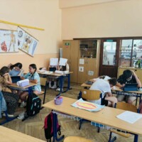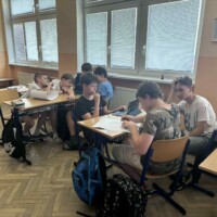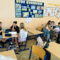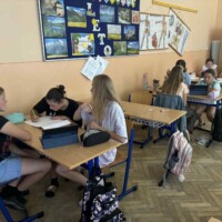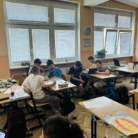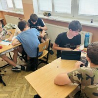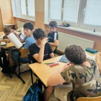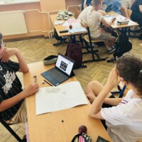 V ďalšej fáze si žiaci v skupinách vymysleli vlastnú rozprávku alebo legendu, ktorú následne výtvarne spracovali – formou komiksu alebo ilustrácie. Každá skupina zároveň vytvorila krátky sprievodný text v angličtine, ktorý vystihoval dej príbehu. Dôraz bol kladený na spoluprácu, kreativitu a využitie anglického jazyka v praxi.