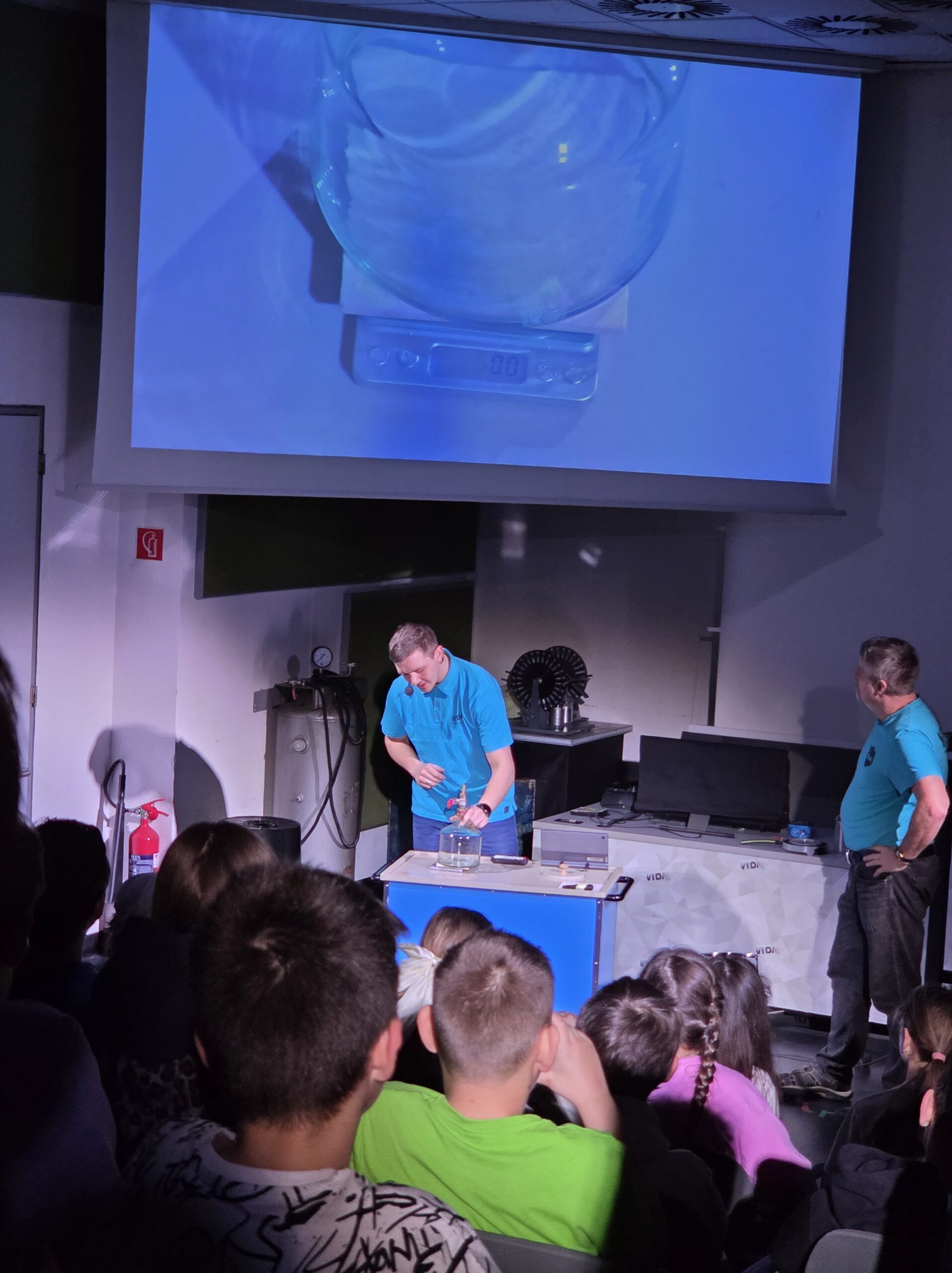 V rámci exkurzie sa konala aj vedecká show „Pod tlakom“. Žiaci pokusy nielen sledovali, ale sa aj aktívne zapájali.