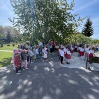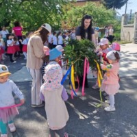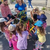 Posledný aprílový deň sa v našej materskej škole niesol v znamení spevu, tanca a slovenskej ľudovej tradície – stavaní mája. Deti sa postarali o zdobenie mája farebnými stužkami a s pomocou uja školníka Paľka a svojich pani učiteliek ozdobený máj osadili v záhrade škôlky, kde bude celý mesiac vítať deti a rodičov. Sme nesmierne vďační za to, že naša materská škola patrí medzi tie, v ktorých zvyky a tradície ešte nevymreli.